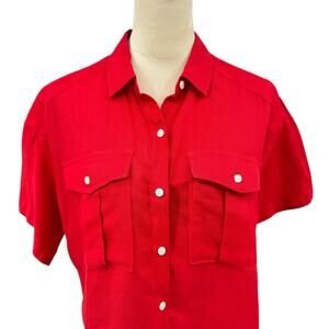 Alex Mill Bright Solid Red 100% Linen Short Sleeve Button Up Utility Camp Shirt