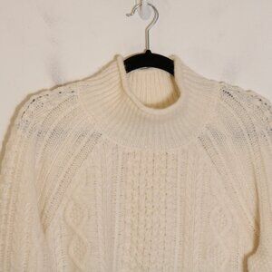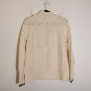 Alex Mill Camil Cable Knit Sweater Large Turtleneck Ivory Fisherman Wool Alpaca