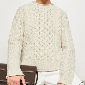 Beautiful and substantial, this chunky cable-knit sweater is made from a luxe blend of RWS-certified ultrafine merino wool, recycled nylon, and alpaca. It’s relaxed and layer-friendly, like a fisherman sweater ought to be, and finished with cozy rolled edges at the collar, cuffs, and hem.