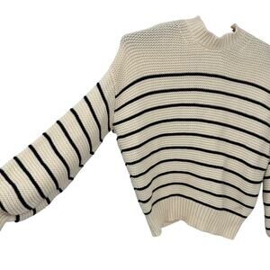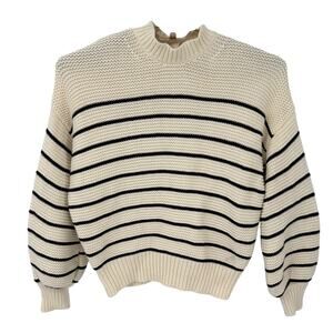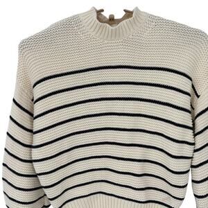 Alex Mill Cream Navy Stripe Button Back Cotton Sweater Reversible Size Medium