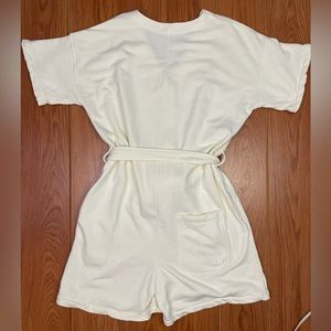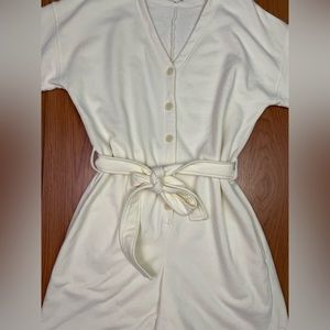 Alex Mill French Terry Tie Waist Button Front Romper Ecru/Ivory Size XL