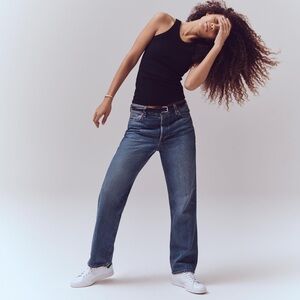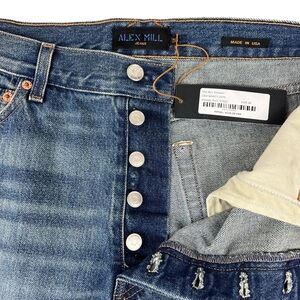 Pair these straight leg jeans with flats, sandals or even heels! You can't go wrong.The Bev Relaxed Jean by ALEX MILL in Vintage Dark Indigo is a stylish addition to any wardrobe. This mid-rise (11.5”) design features a straight leg and a button fly closure, crafted from 100% non-stretch cotton for a classic look made in LA. Perfect for pairing with tees and sneakers, these jeans offer a versatile silhouette that hugs the hips if you buy true to size, though sizing up is recommended for a more relaxed, hipslung style. Care is easy with machine wash and tumble dry instructions, ensuring your denim stays effortlessly chic.