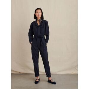Alex Mill Jumpsuit Womens Small Twill Cotton Cargo Navy Blue Button Pockets