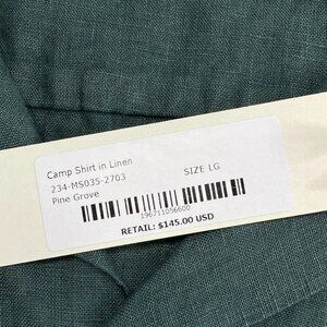 Alex Mill Men's Camp Short Sleeve Linen Shirt Pine Grove Green Size L