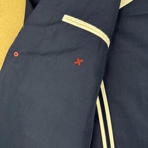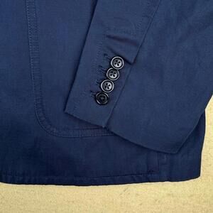 Please review all photos carefully to assess condition and details. This is an Alex Mill men’s blazer in navy blue, made from a breathable linen-cotton blend. Features a casual, unstructured fit with a 2-button front—perfect for smart-casual, preppy, or warm-weather styling.