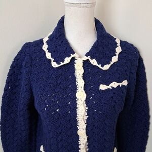 We only made a handful of these cardigans, inspired by those crocheted jackets you'd see while vacationing in the South of France back in the day. Each one-of-a-kind piece was hand-crafted in Peru at a small workshop owned by two women who specialize in the exact stitch + construction we were looking for (which is all code for: these are truly very special).