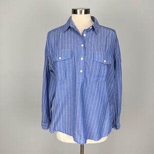 Alex Mill Womens Blue Stripe Oversize Popover Shirt Long Sleeves High Low size M