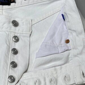 Features: Classic 5-pocket styling, crisp white finish, versatile straight-leg cut