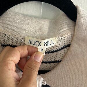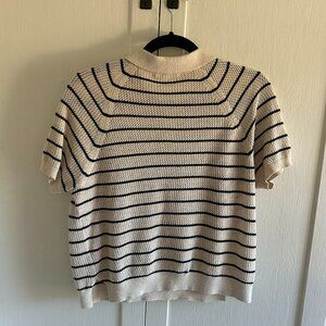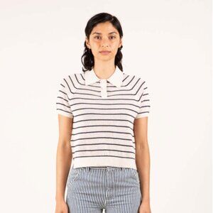 Cool, lightweight knit polo from Alex Mill in off-white and navy stripes. Super cute and very French! Size Small. Used condition- no rips or stains but slight pilling.