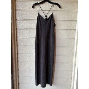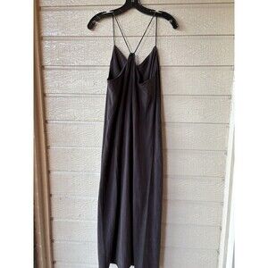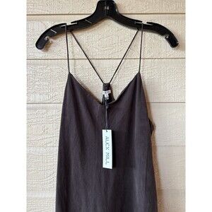 New with Tag $225, Alex Mill women's Dark Hickory Brown Alexis 100% Lyocell Knit Strappy Midi Slip Dress, size Large, soft lightweight stretch fabric, V-neck with slightly flared body, sleeveless with spaghetti shoulder straps.
