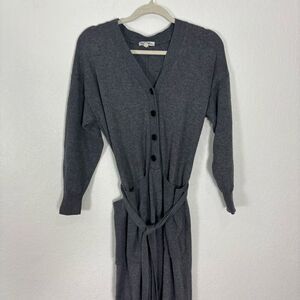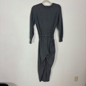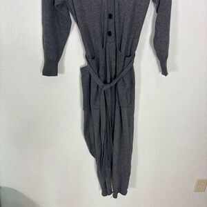 Alex Mill Grey Wool and Cotton Henley Long Sleeve Jumpsuit with Pockets & Belt S