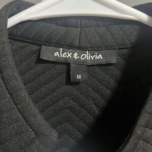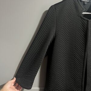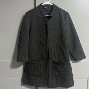 Alex & Olivia Women Herringbone Open Front Coat Black Medium Academia Pockets