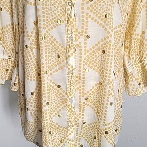 Alex & Parker Gold & White Dotted Buttondown Blouse, Ruffled Neckline, Size 2X