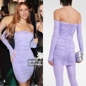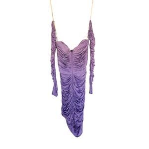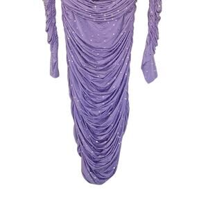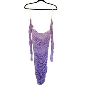 Alex Perry Crystal Rhinestone Embellished Ruched Jersey Purple Mini Dress Size 4