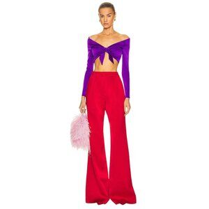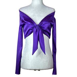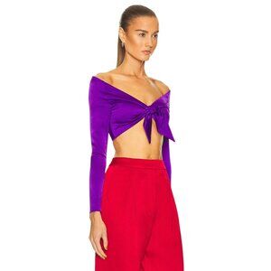 Alex Perry Ford Off Shoulder Bow Tie Crop Top in Purple 8 New Womens Satin Blous