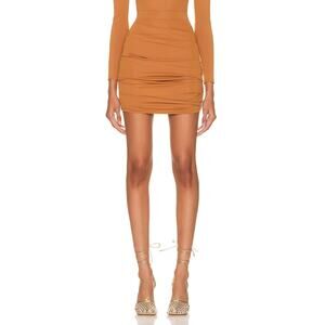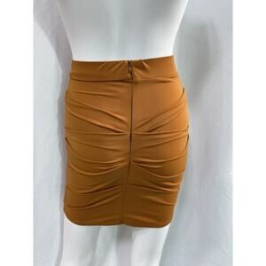 Alex Perry 'Patton' Brown Ruched Mini Skirt Size US 2/ UK 6: unlined, hidden back zip closure, elastic waistband, stretch matte fabric with ruched detail.
