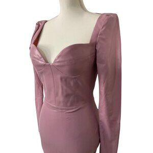 Alex Perry Regan Sweetheart Long Sleeve Cup Mini Dress in Rose New Womens