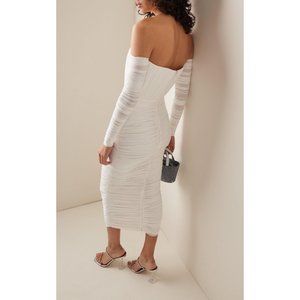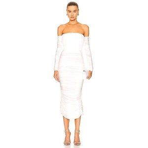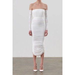 Alex Perry Sterling Ruched Long Sleeve Off Shoulder Dress White 0 NWOT $1800