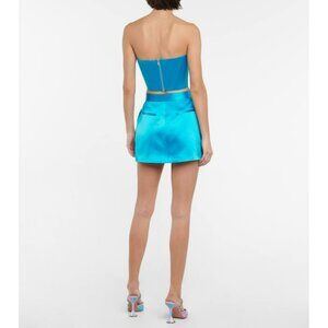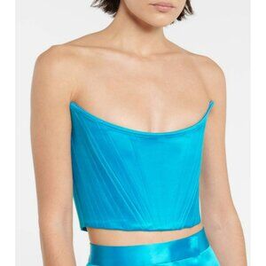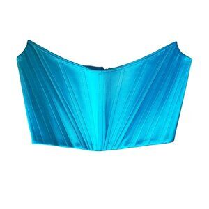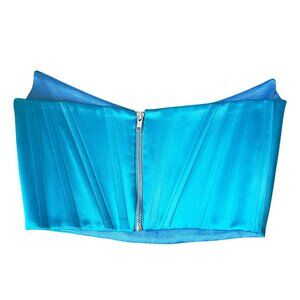 Alex Perry Teal Blue Bennet Cotton Silk Satin Bustier Corset Top UK 8 US 4