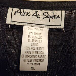 Alex & Sophia Glitter Side-Shirred V-Neck Black and Gold Top. Please see pictures and if available tags for more details. If you have any questions or would like more details, please do not hesitate to ask. All measurements are approximate. Non smoking home. We do have a dog. I will drop off for shipping next day, Monday through Saturday. If you purchase on Saturday or Sunday, I will ship on Monday (If the post office is closed for a holiday, I will ship the following day). I welcome all offers, I will either accept or I will respond back with my best offer. Thank you for looking!