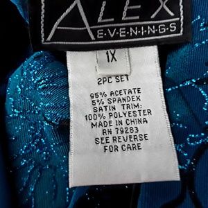 Purchased this Jacket and Top for a special event and only wore it once. It is a size 1X with the fabric content listed in the photos, as well as the care directions.