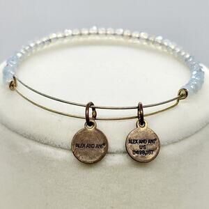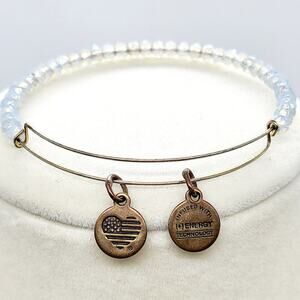 Alex and Ani American Flag Heart Charm Faux White Crystal Beaded Bangle Expandable Wire Bracelet