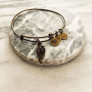 Alex and Ani Angel Wing Charm Bracelet Dark Bronze Gold Toned Metal Slide