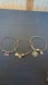 Set of three Alex and Ani stacking gold tones and bronze bracelets. One bracelet features a compass rose. One bracelet features a tourmaline colored gem on a sliding pendant. One bracelet features a small “B” pendant. Each bracelet can be adjusted to fit using sliding adjustments. Bracelets have some wear please see pictures and video for details.