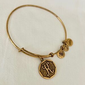 Alex and Ani Brass, Adjustable Gold Finish "K" Bangle Bracelet