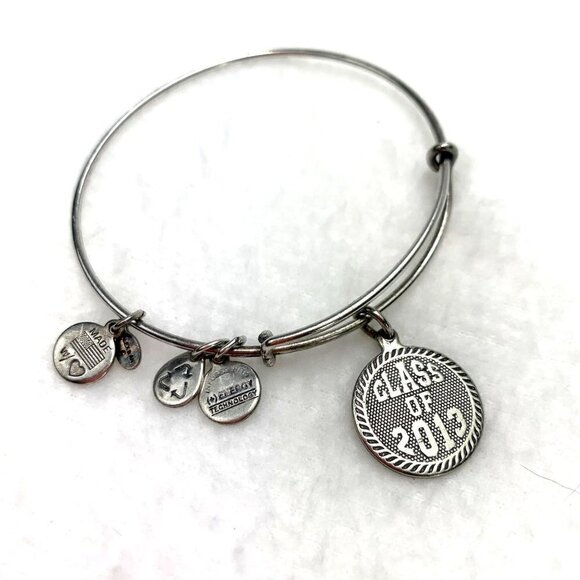 One silver Alex and Ani charm bracelet with one large Class of 2013 charm and three small charms. Expands from 2.0”- 3.5” to fit most wrists.