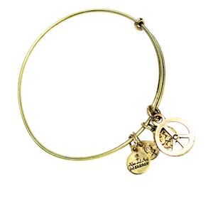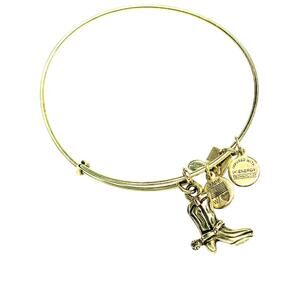 Alex and Ani Cowboy Boot, Peace Sign, and Brown Beaded Gold Tone Expandable Bangle Bracelets