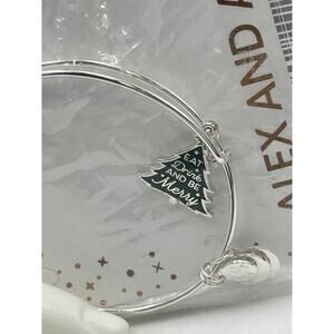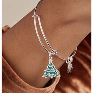 This beautiful adiustable bangle features a color-embossed Christmas tree charm to bring you joy throughout the holiday