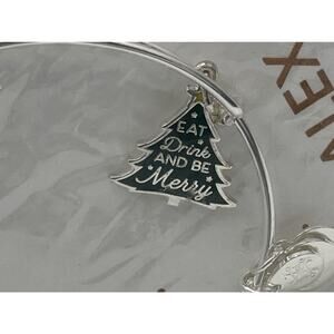 Alex and Ani EAT, DRINK, AND BE MERRY Shiny Silver Charm Bangle Bracelet New