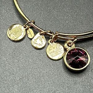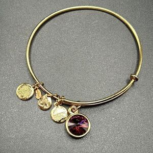 Alex and Ani Expandable Coppure Gold Charm Bangle Bracelet Purple Glass Stone
