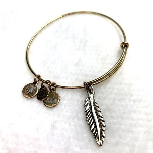 Alex and Ani Feather Charm Bracelet - Gold/Silver, Expands 2"- 3.5"