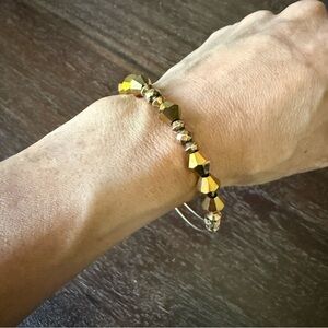 Elegant gold beaded bracelet perfect for any occasion. Add a touch of sophistication to your outfit.