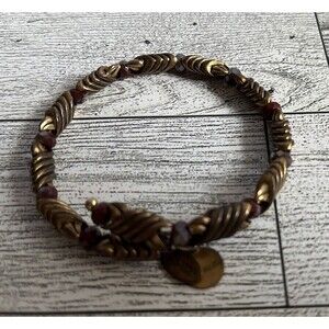 Up for sale is this Alex and Ani Gold Forest's Blessing Red Amber Crystal Gold Tone Wrap Bracelet.