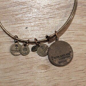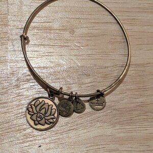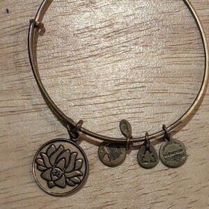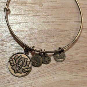 Alex and Ani Gold Tone Lotus Peace Petals Charm Adjustable Bangle Bracelet