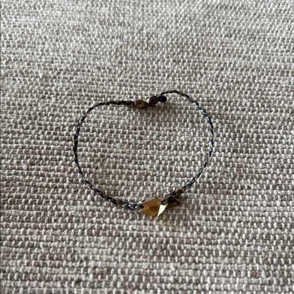 This Alex and Ani bracelet features a sleek black cord adorned with gold accents, offering a refined and minimalist design. The contrast between the gold elements and the dark cord creates a sophisticated look, perfect for adding a touch of elegance to any outfit.