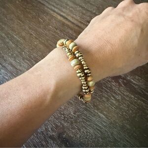 Alex and Ani Gold and Tan Beaded Bracelet