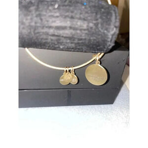 Radiate positivity and style with the Alex and Ani Bangle Bracelet. This exquisite piece, crafted with a Rafaelian Gold Finish, offers a warm and inviting glow that complements any outfit. Its adjustable design ensures a perfect fit, while the charming dangle adds a playful touch to your wrist. Whether you're dressing up for a special occasion or adding a bit of sparkle to your everyday look, this signed bracelet is a versatile accessory that speaks to your unique style. This pre-owned piece is in excellent condition, ready to become a cherished part of your collection.