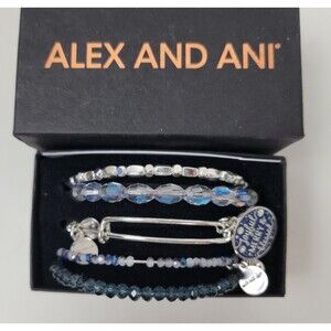 Up for sale is this Alex and Ani five piece, "Joyful, Merry & Blessed," bangle bracelet set. They are in nice condition and come in their original box. As always, thank you for your interest. Good luck, and happy buying!