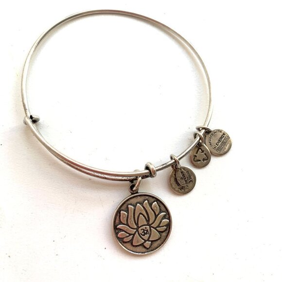 Alex and Ani Lotus Charm Bracelet - Silver Finish Expands 2"- 3.5"