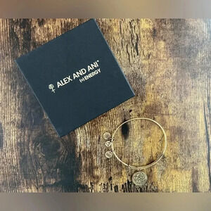 Alex and Ani | Mom, Expandable Rafaelian Bangle Bracelet. Color: Rafaelian gold finish. Mom, charm. Engraved on the back. Traditional Alex and Ani adjustable bangle bracelet. Like new condition with box.