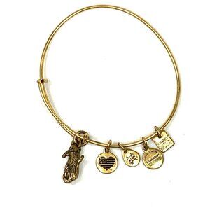 Stacked or solo, this Otter Charm Bangle by Alex and Ani adds the perfect personalized flair to any outfit. One gold Alex and Ani charm bracelet with one large Otter charm and three small charms. Expands from 2.0”- 3.5” to fit most wrists.