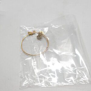 This elegant gold-tone bangle by Alex & Ani features a timeless design with charming pendants and a pearl accent. A versatile accessory for any wardrobe.