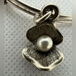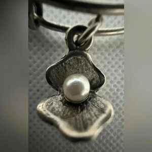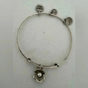 Womens Alex and Ani expandable wire bangle. Silver metal Oyster charm- truth | rebirth | purity. The charm is an opened oyster with a white pearl center. Good, used condition.