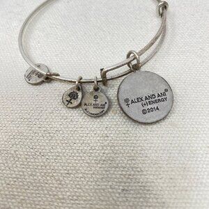 The Alex and Ani Path of Life Charm Bangle Bracelet is a stylish and adjustable accessory from 2014, featuring a silver-tone finish. Perfect for adding a meaningful touch to any outfit.