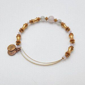 Alex and Ani Rose Quartz Beaded Expendable Aged Gold Tone Bangle Bracelet