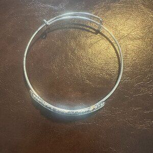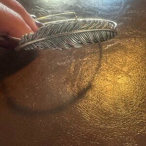 Add a touch of boho charm to your look with this beautiful Alex and Ani silver-tone feather bangle.